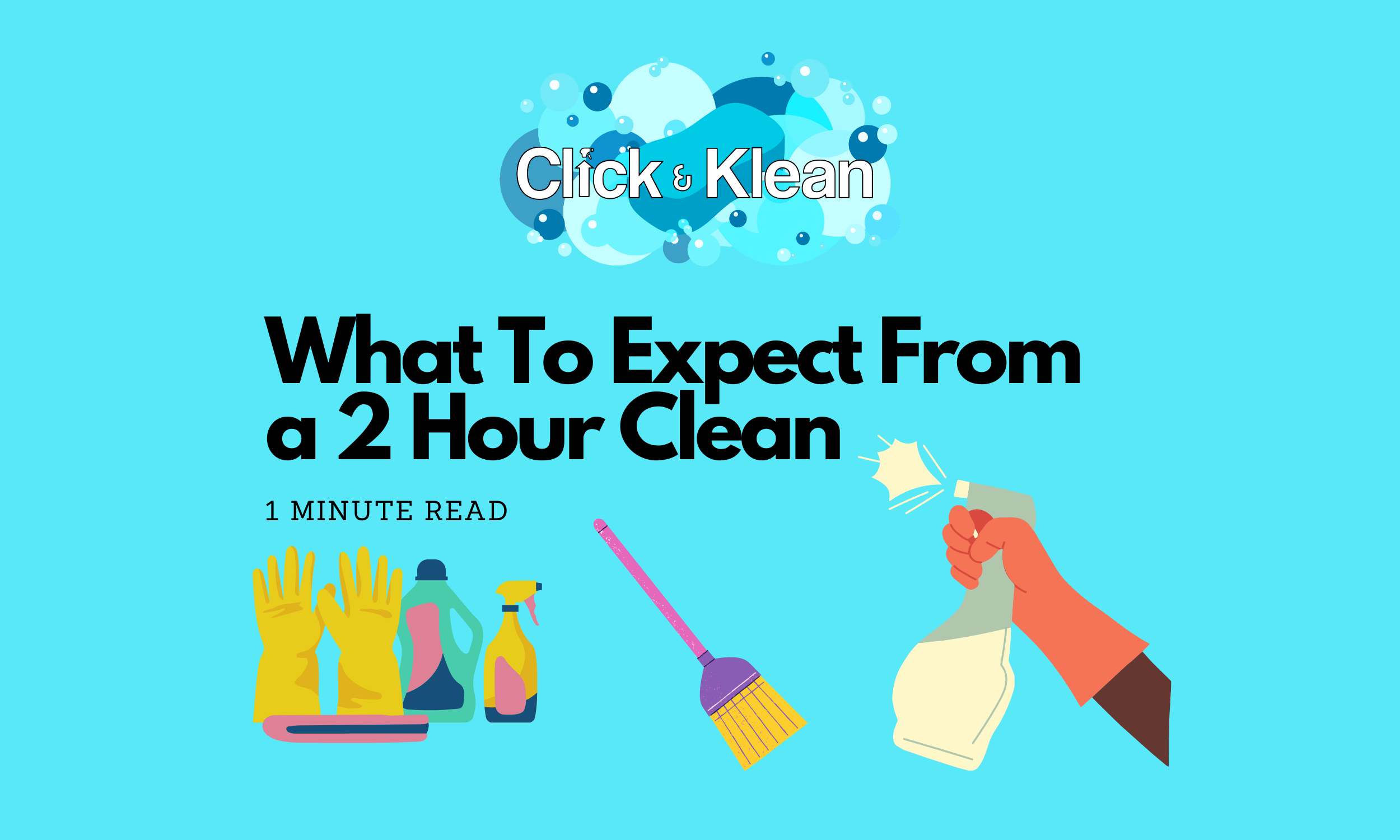 We are going to break down what to expect from a 2-hour clean based on a 2-bedroom house without specific requirements provided by the customer. Please note: Depending on the size of your home and how many objects require moving the clean will vary.
